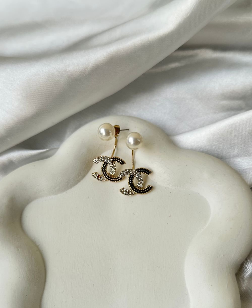 Introducing the “Chic CC Dangles,” a pair of elegantly designed earrings that exude sophistication and style. Featuring a contemporary dangle design, these earrings add a touch of modern elegance to any ensemble.