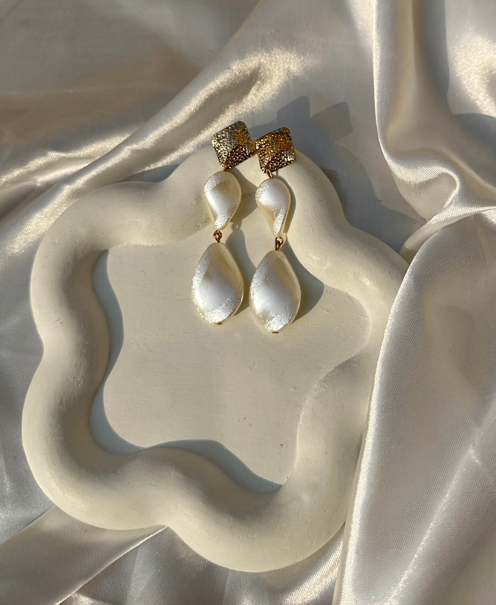 Introducing the “Lustre Drops,” a pair of elegantly designed earrings that exude timeless charm. Featuring delicate drop-shaped elements, these earrings add a touch of sophistication to any ensemble.